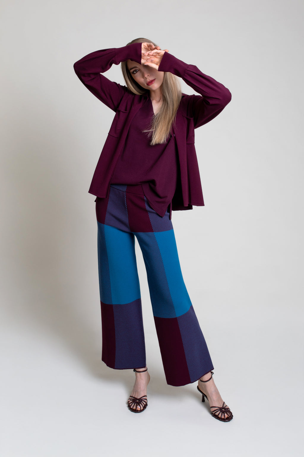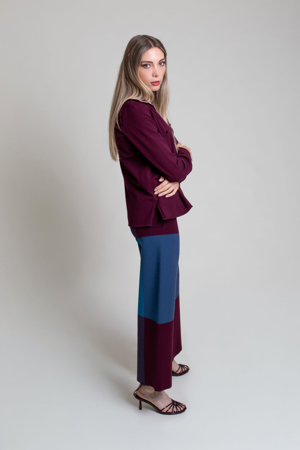 Jersey sobrecamisa de punto tricot. Modelo de corte recto con manga larga, cuello camisero, bolsillos y cierre en centro delantero con botones al tono