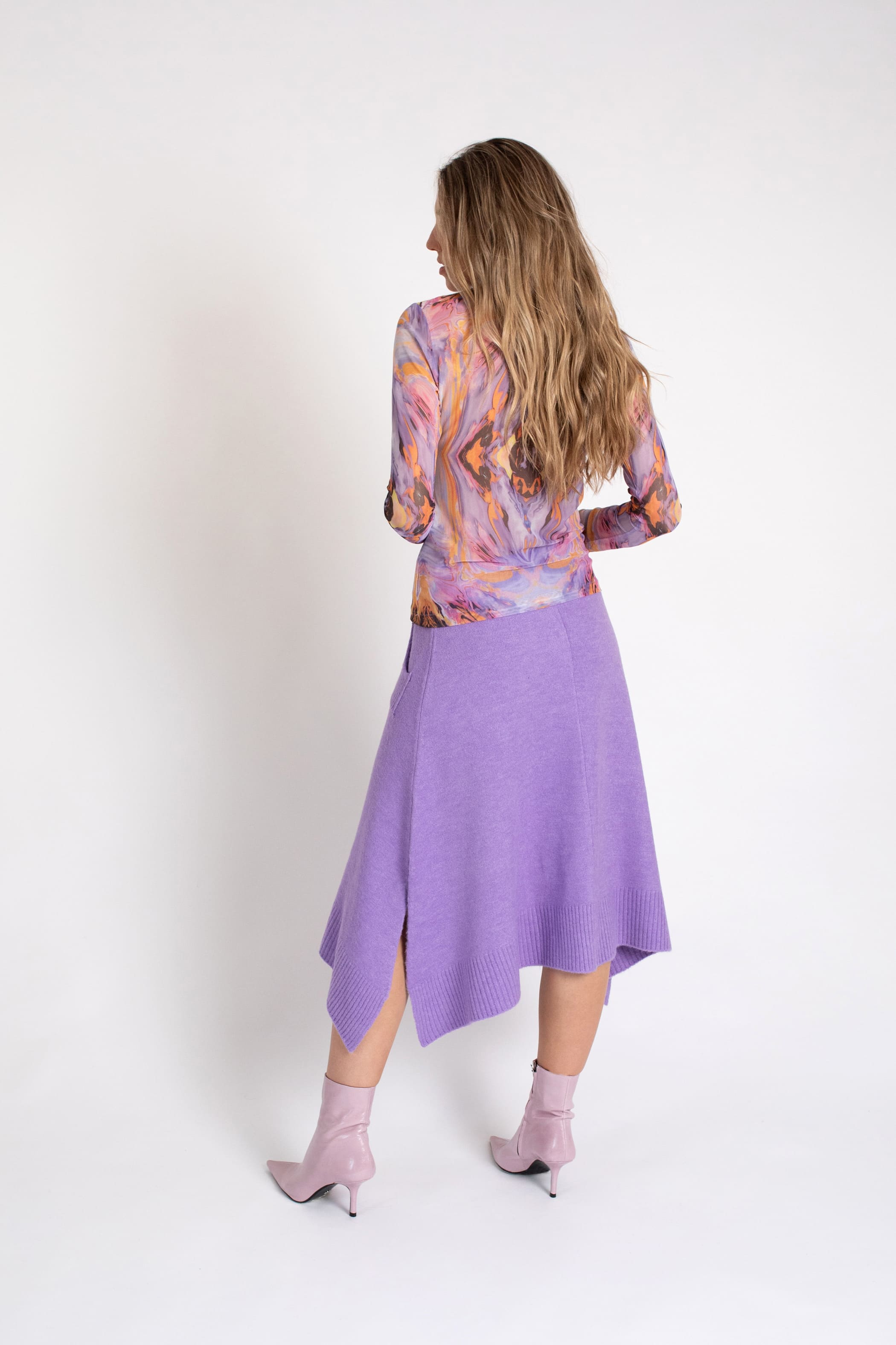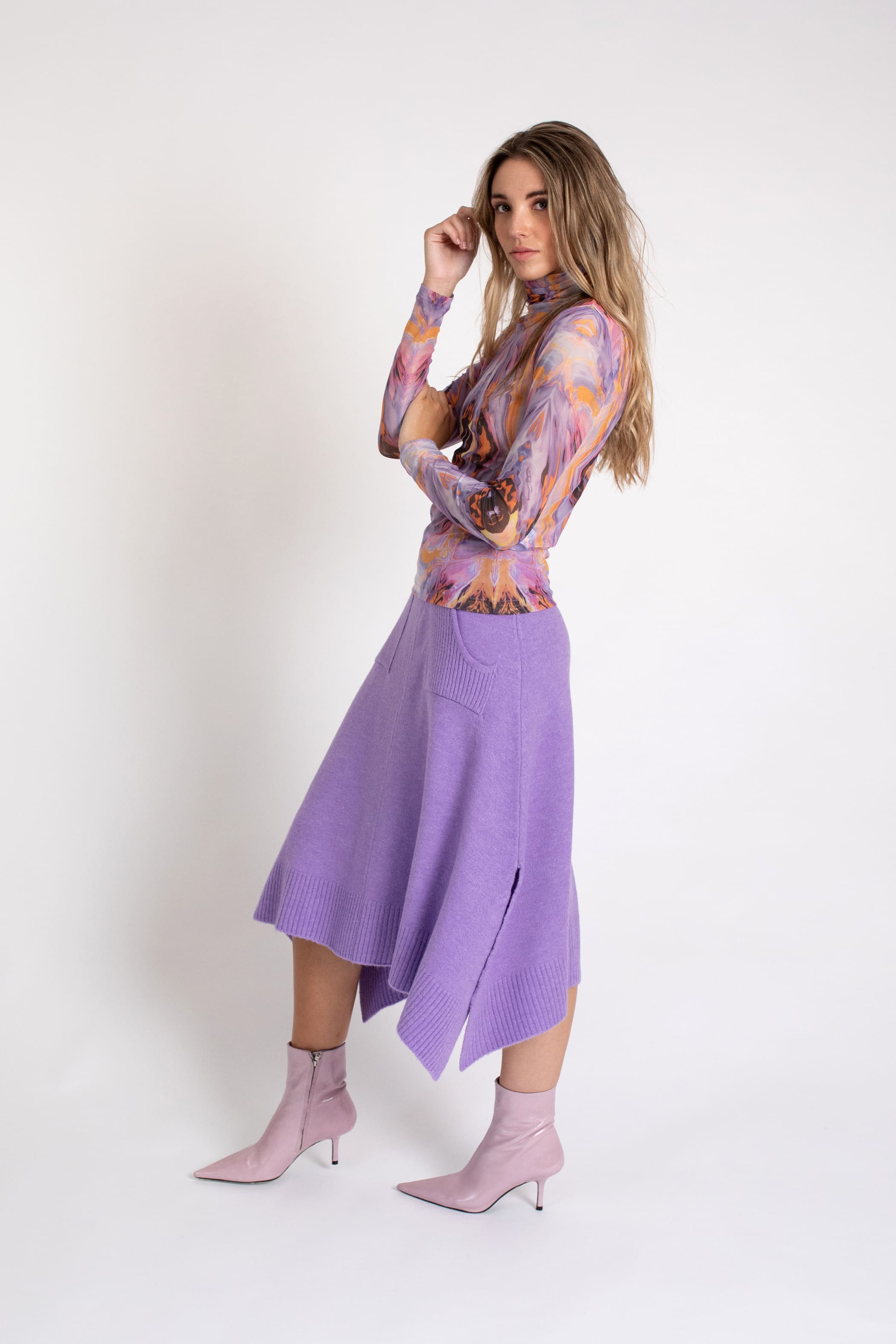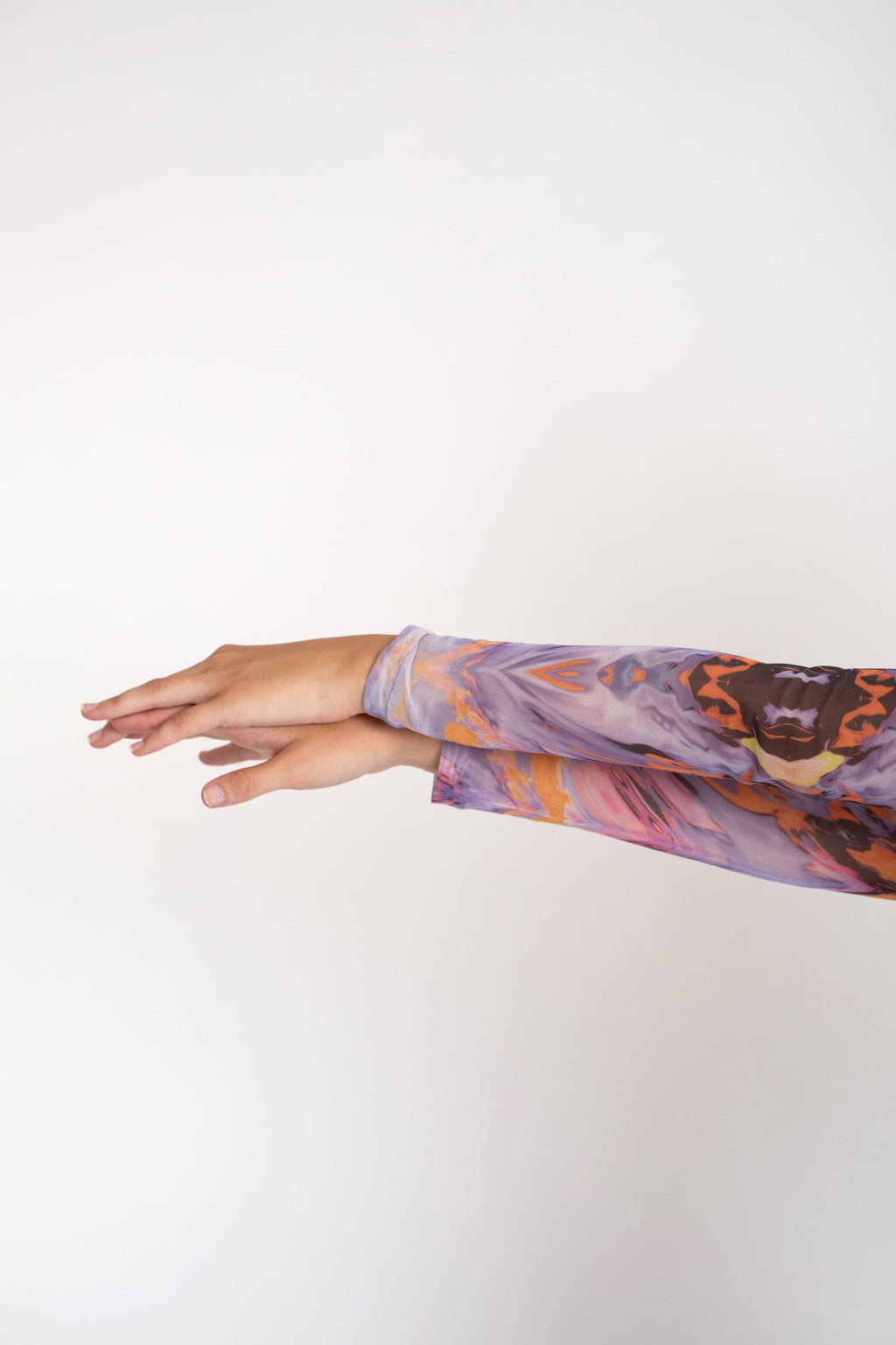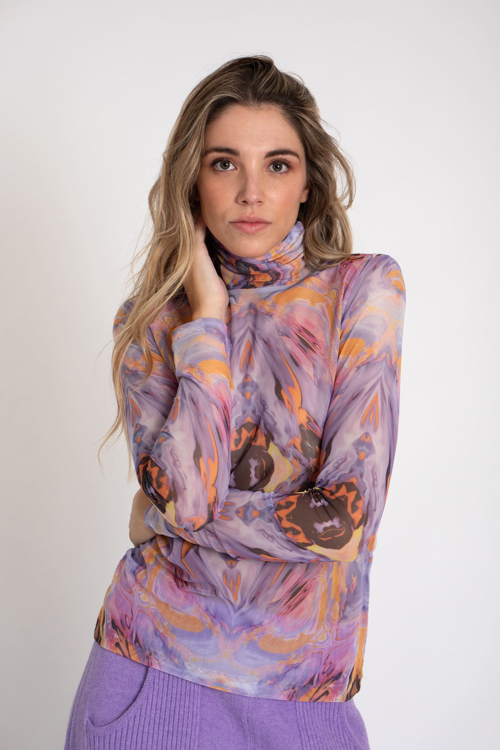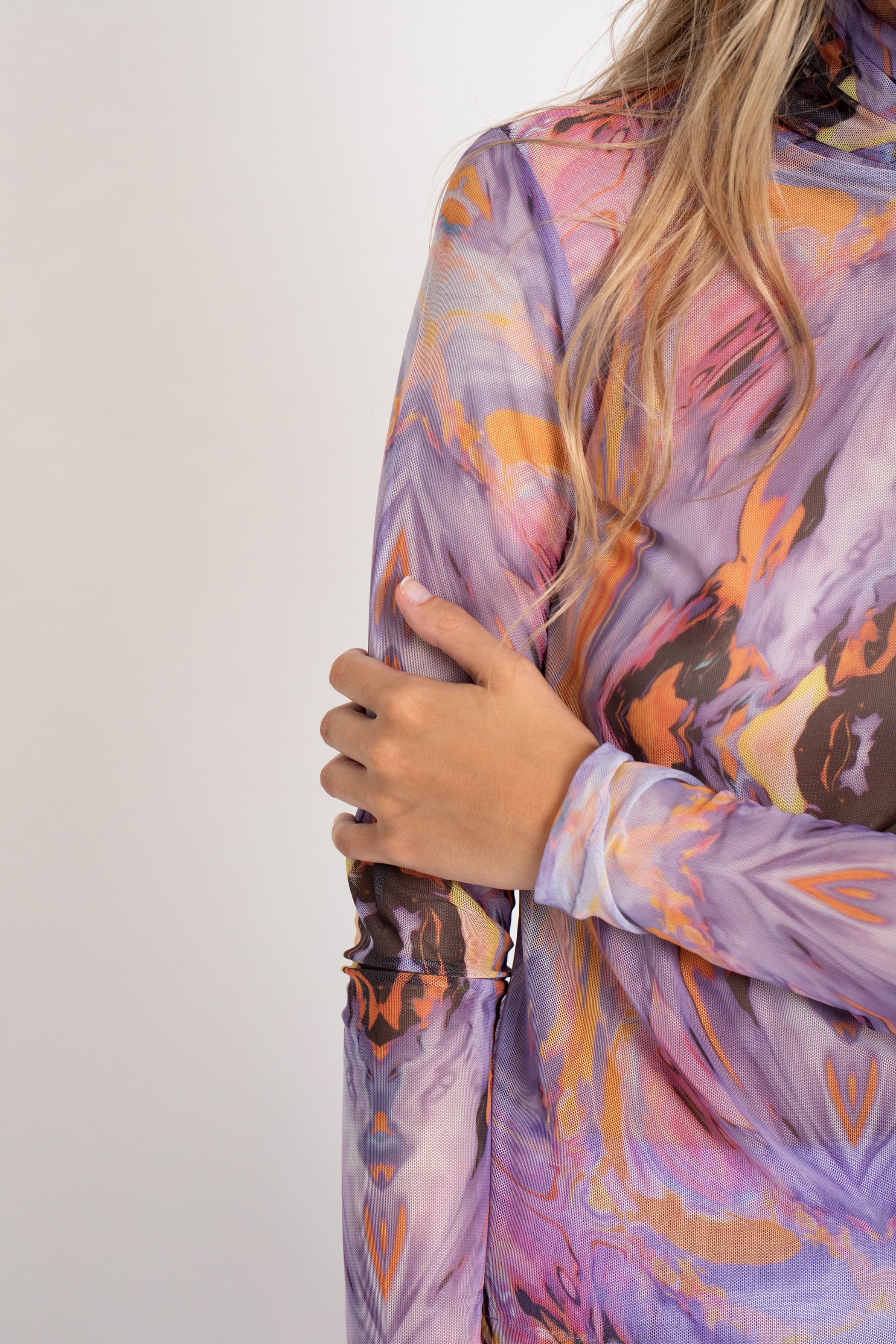 Camiseta de tul estampada con manga larga y cuello vuelto