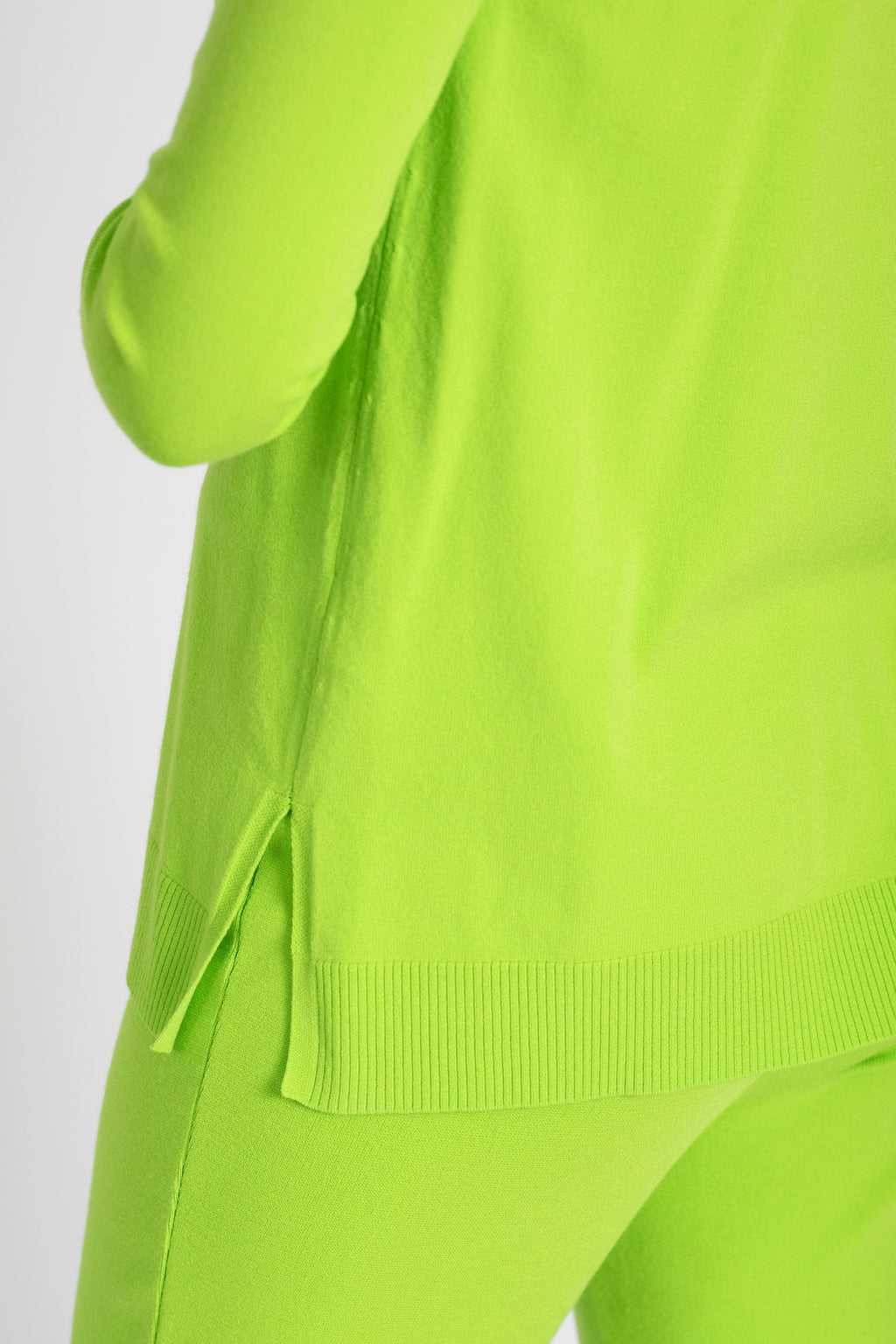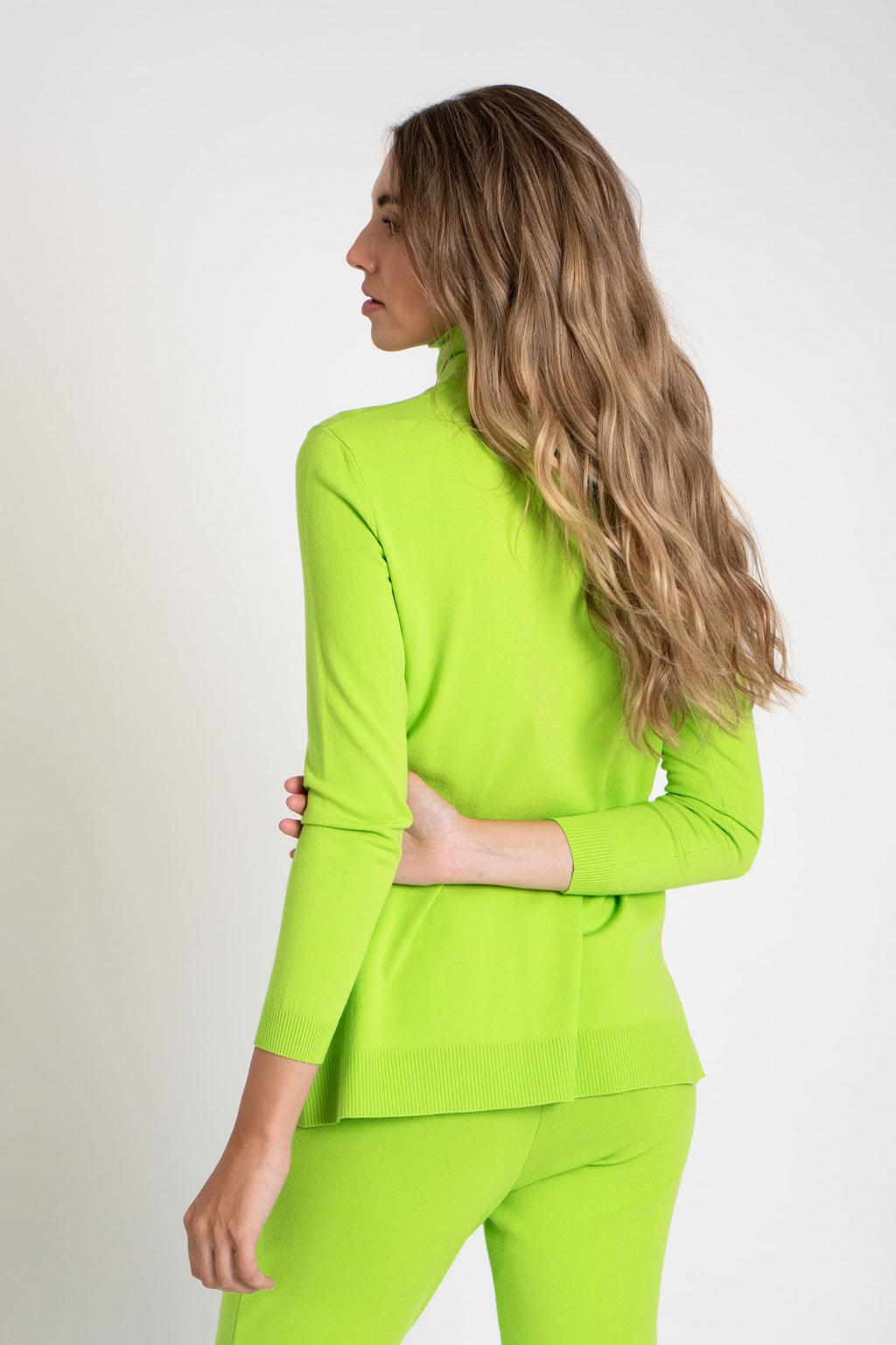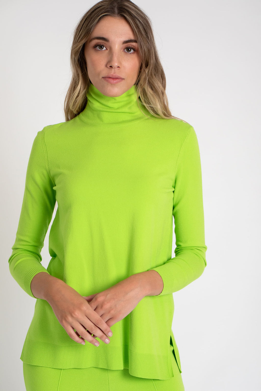 Jersey de punto tricot color verde. Modelo de corte recto, manga larga y cuello cisne.