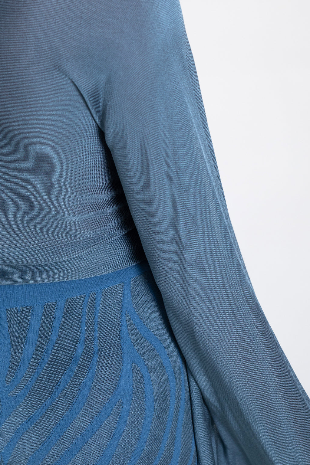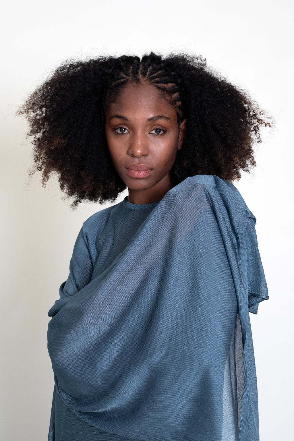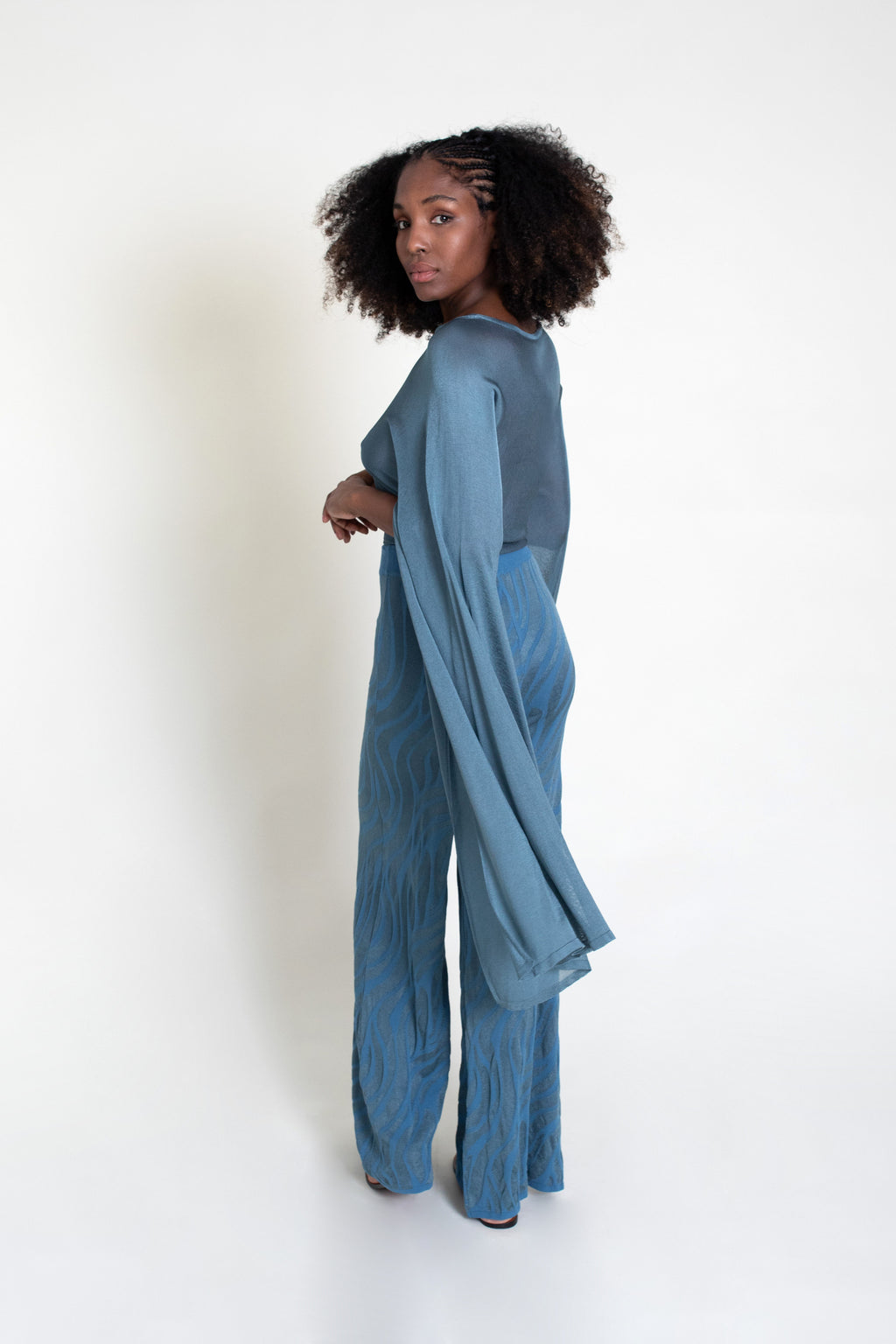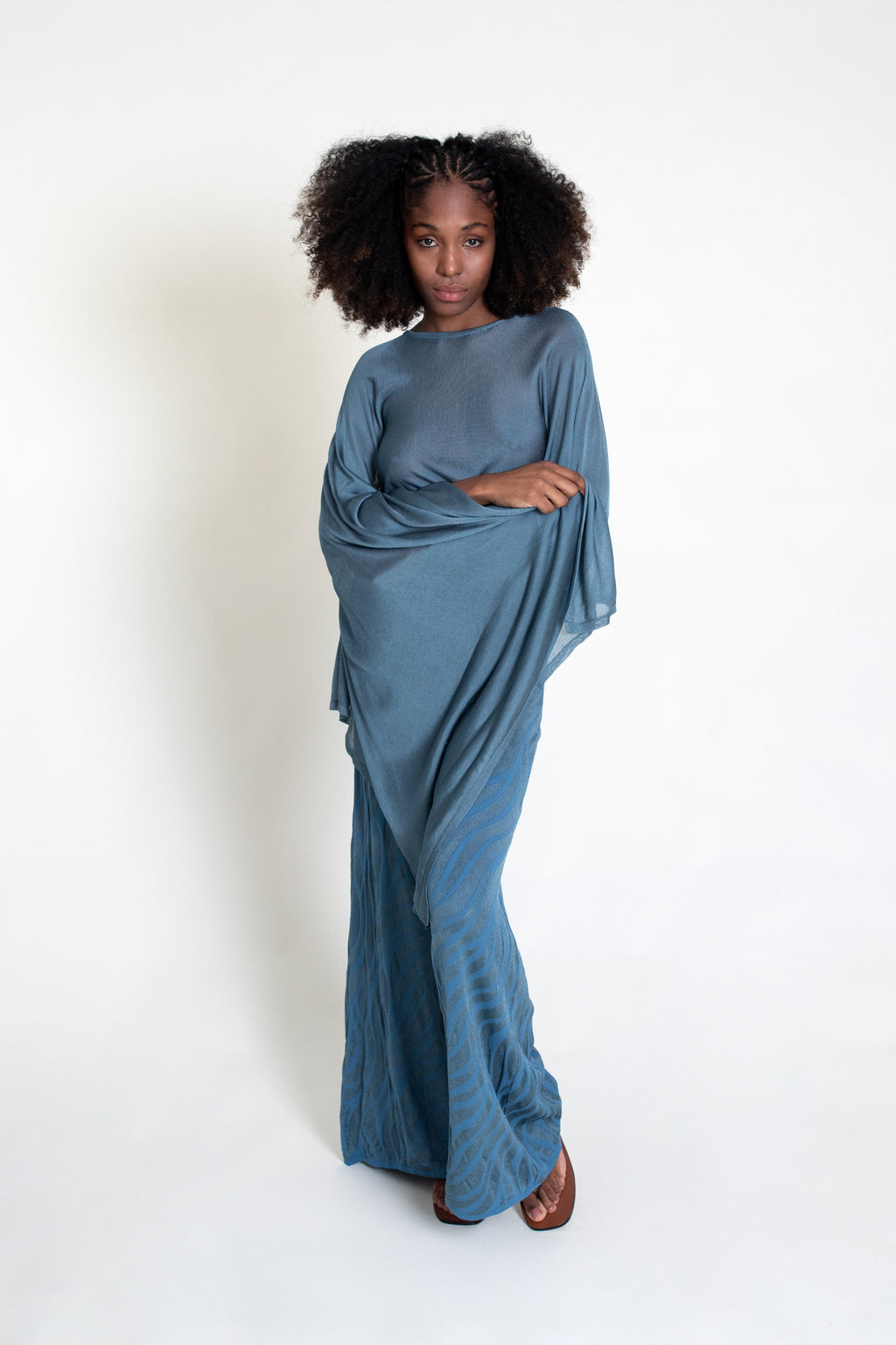 Jersey corto tipo capa de punto fino con ligero brillo, escote redondo y corte recto.