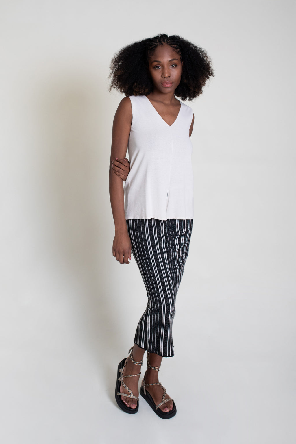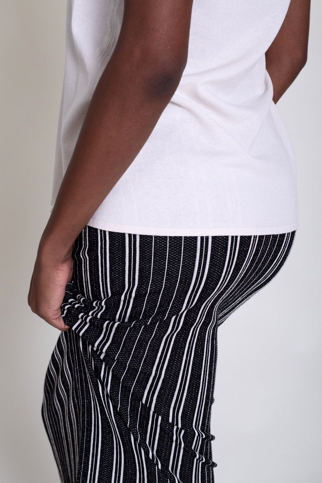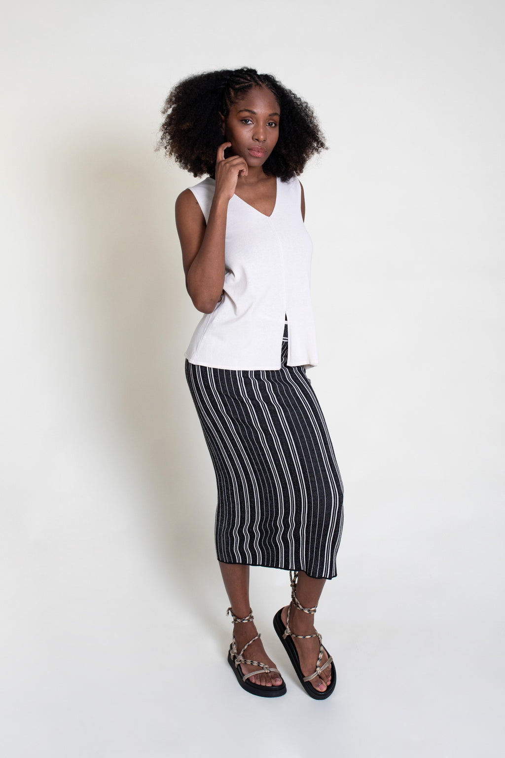 Falda midi de punto tricot con rayas, modelo de corte recto y cintura con goma.