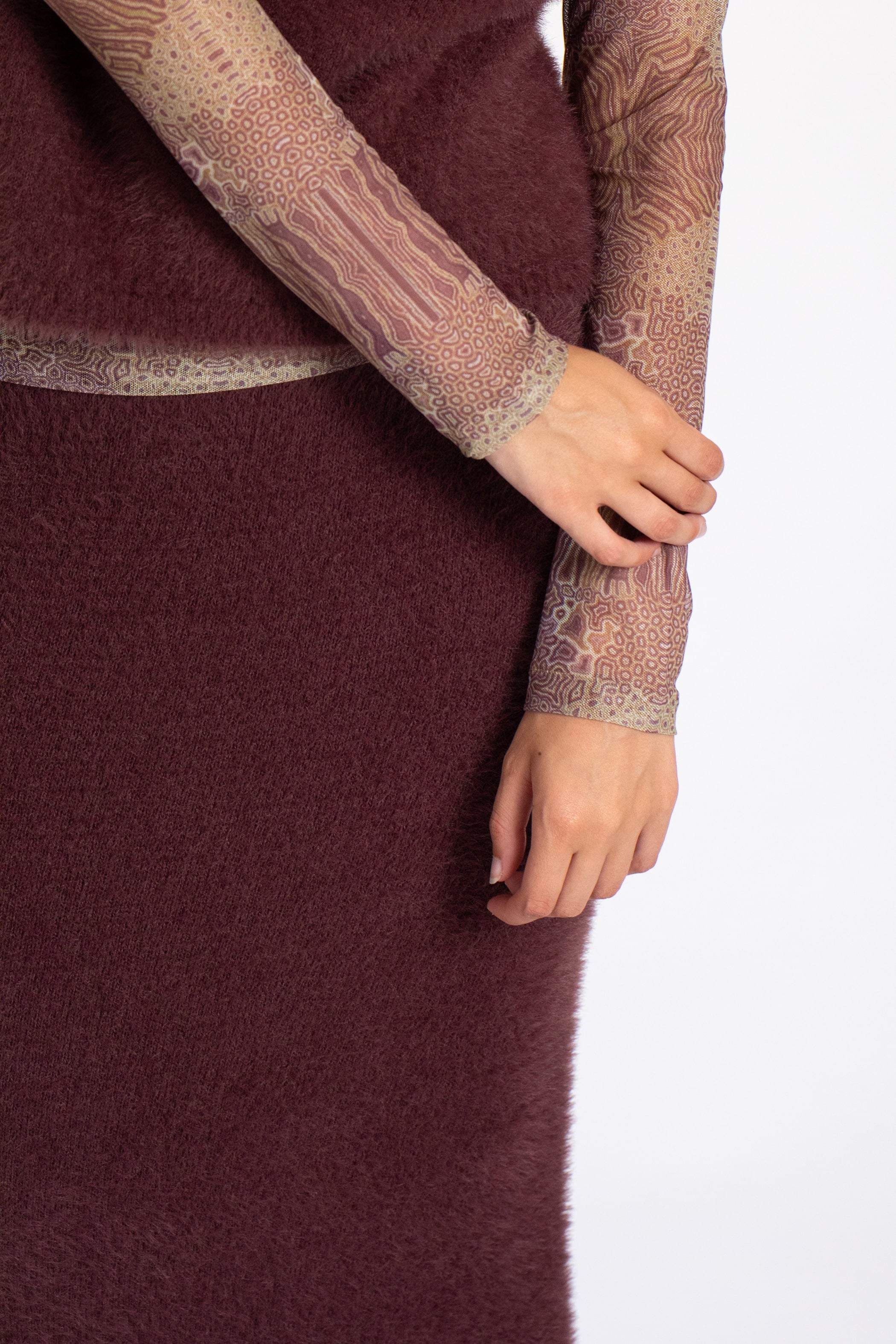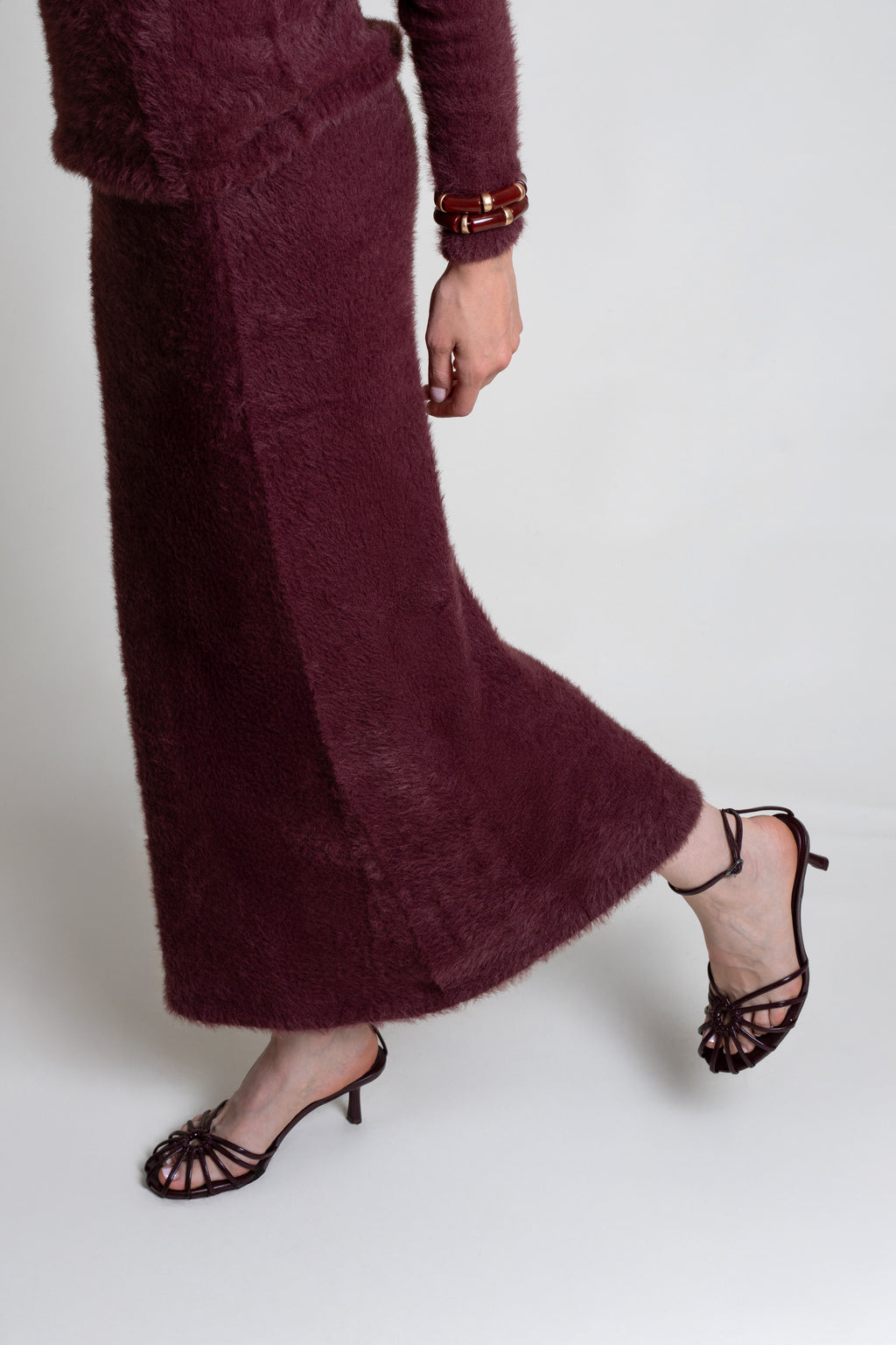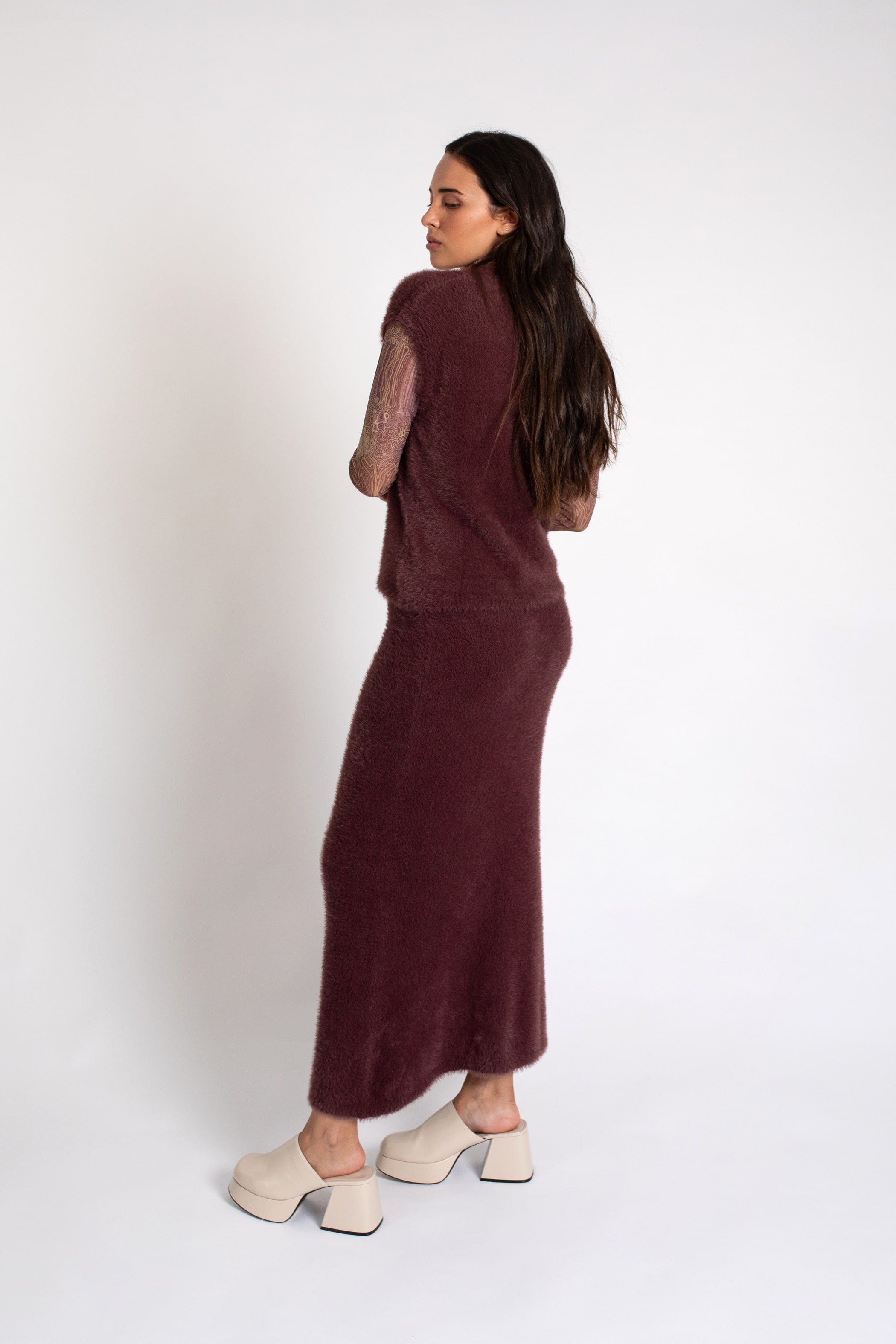 Falda de punto suave con textura de pelo, con corte recto y cintura con goma.