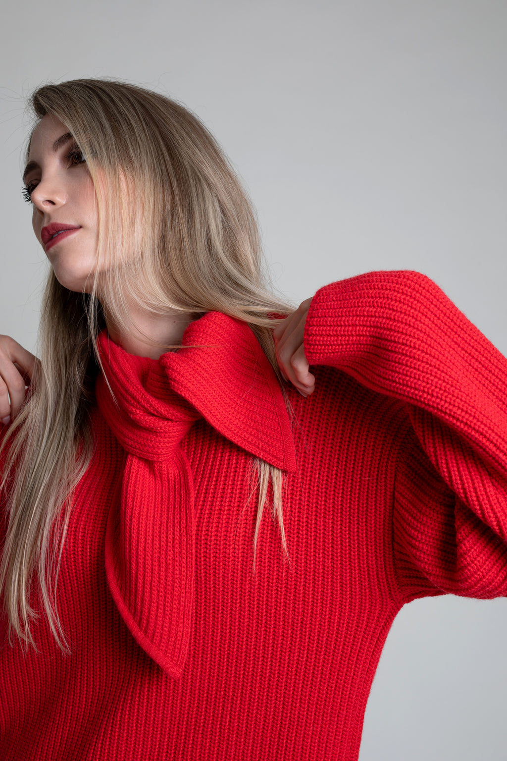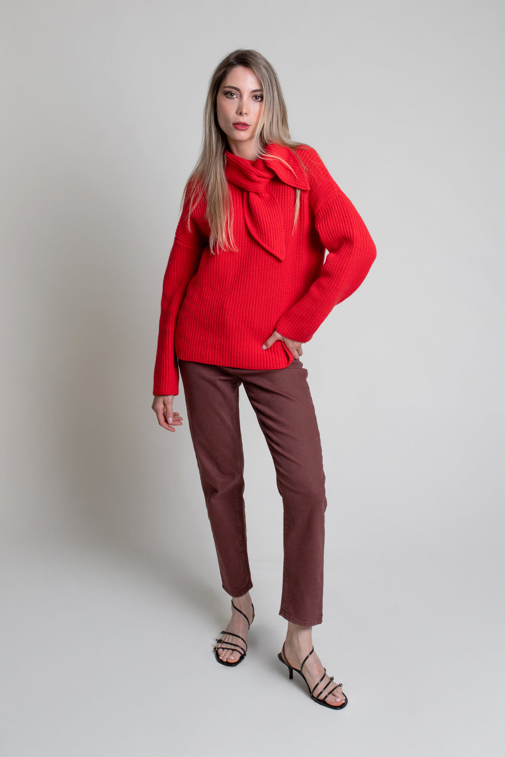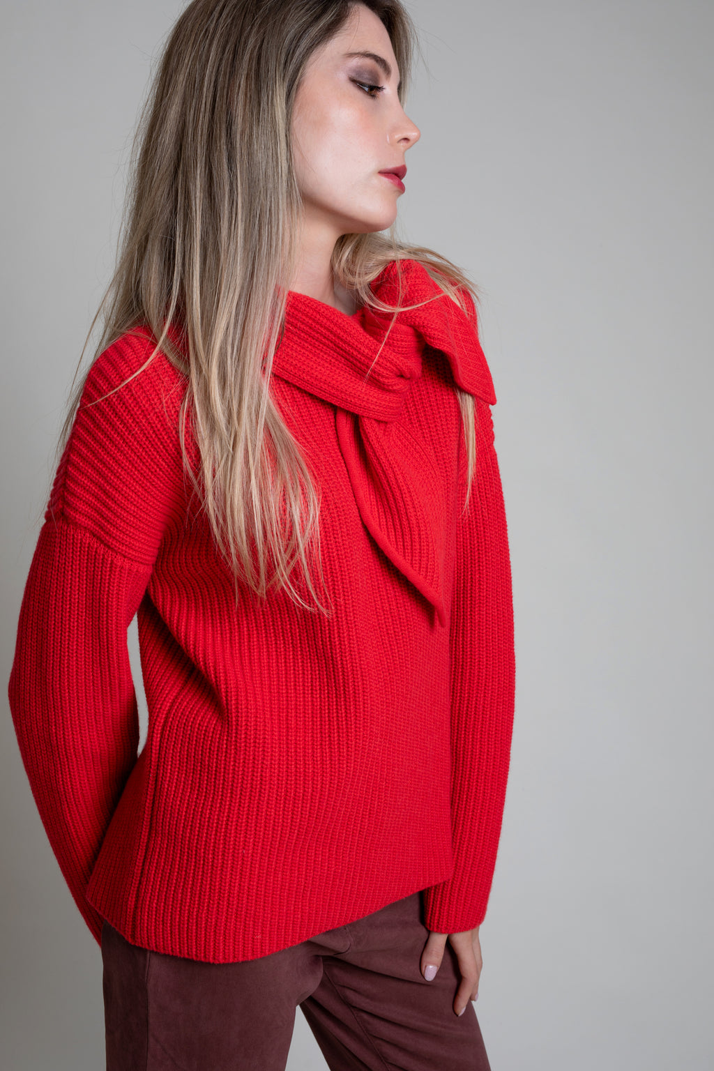 Jersey de punto grueso ligeramente oversize. Manga larga y cuello para atar tipo pañuelo