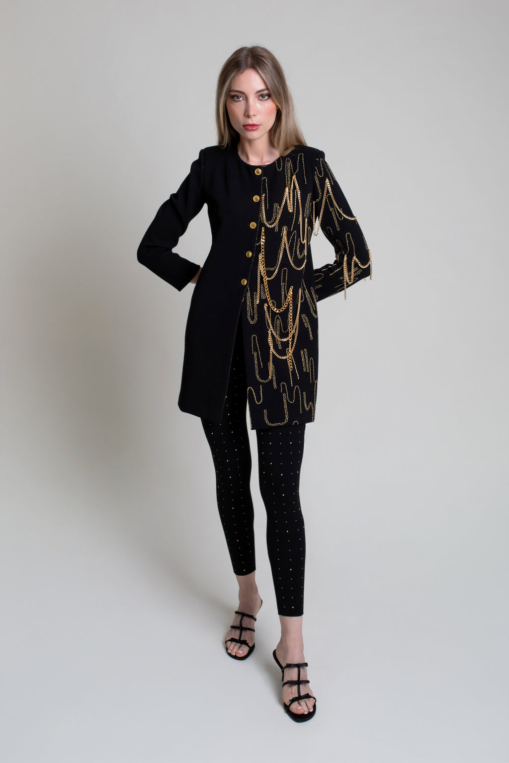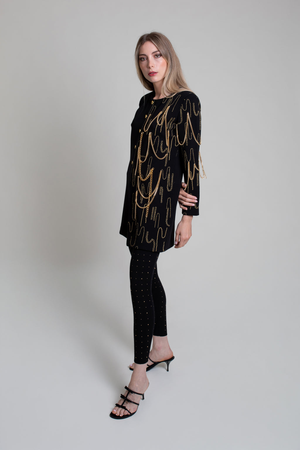 Pantalón de punto tipo legging con adorno de tachas metálicas. Modelo de corte muy ajustado con cintura con goma