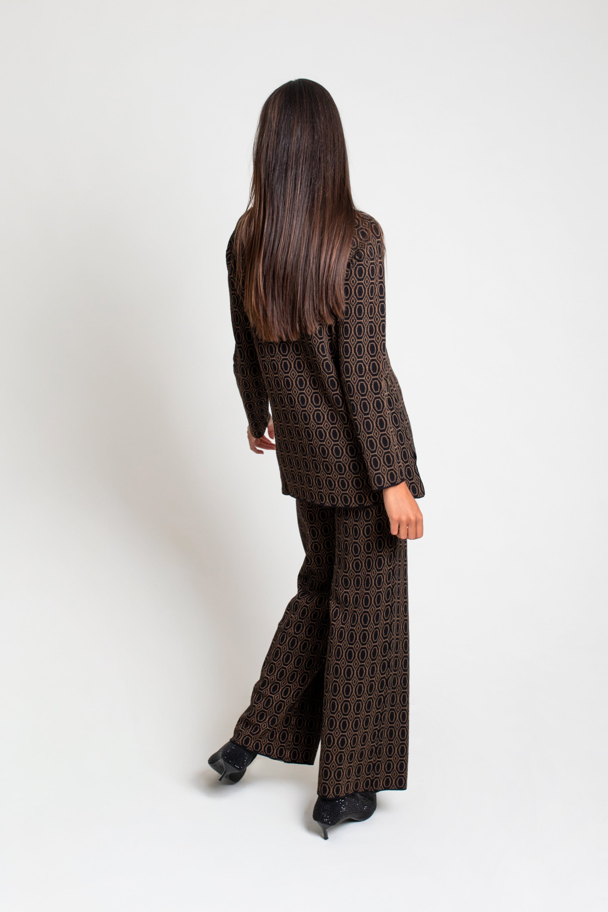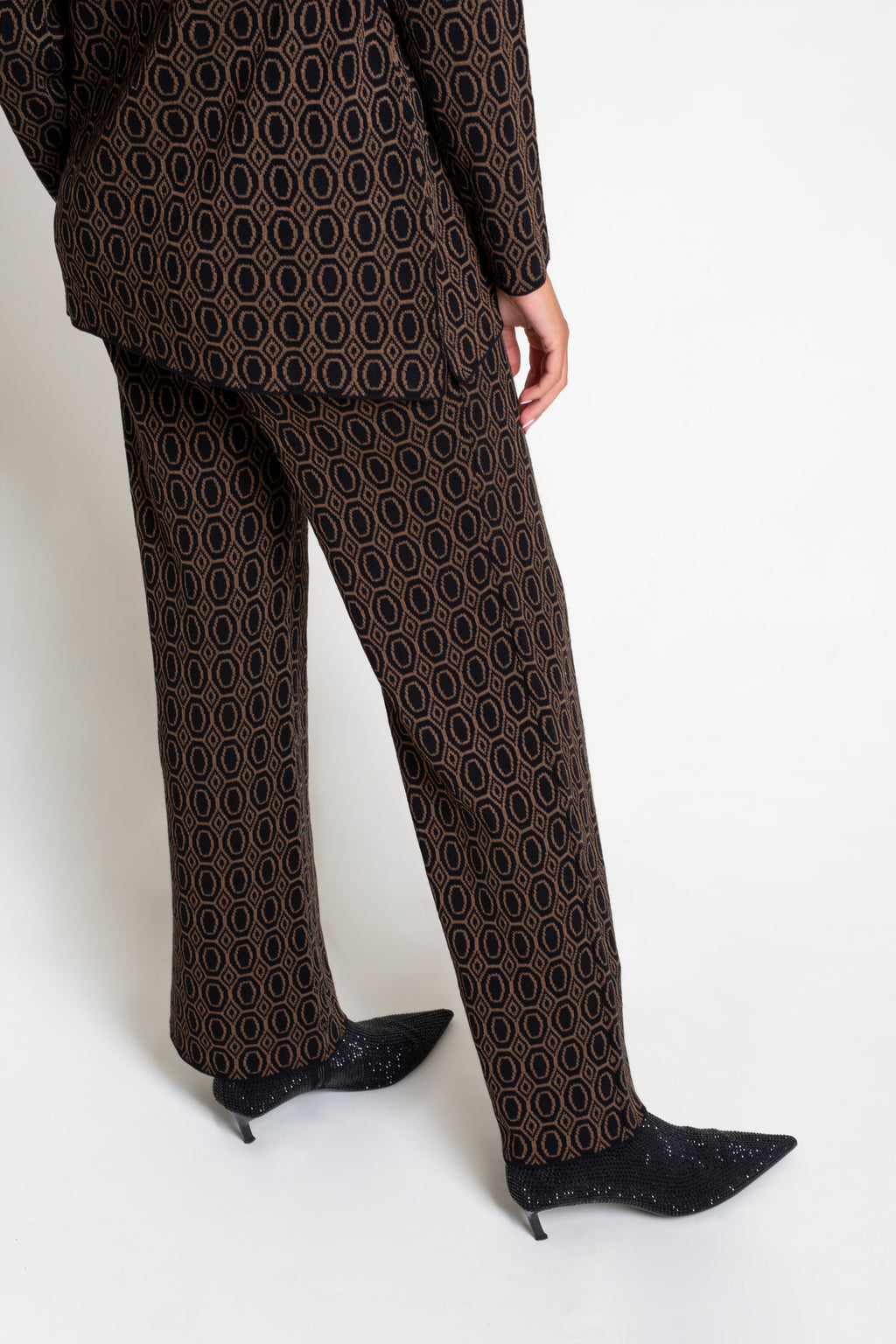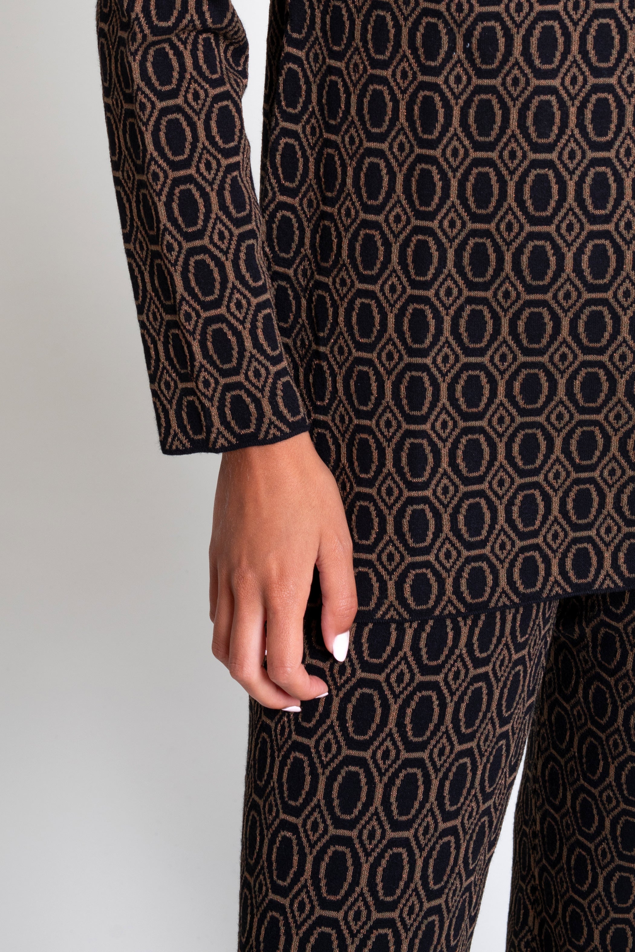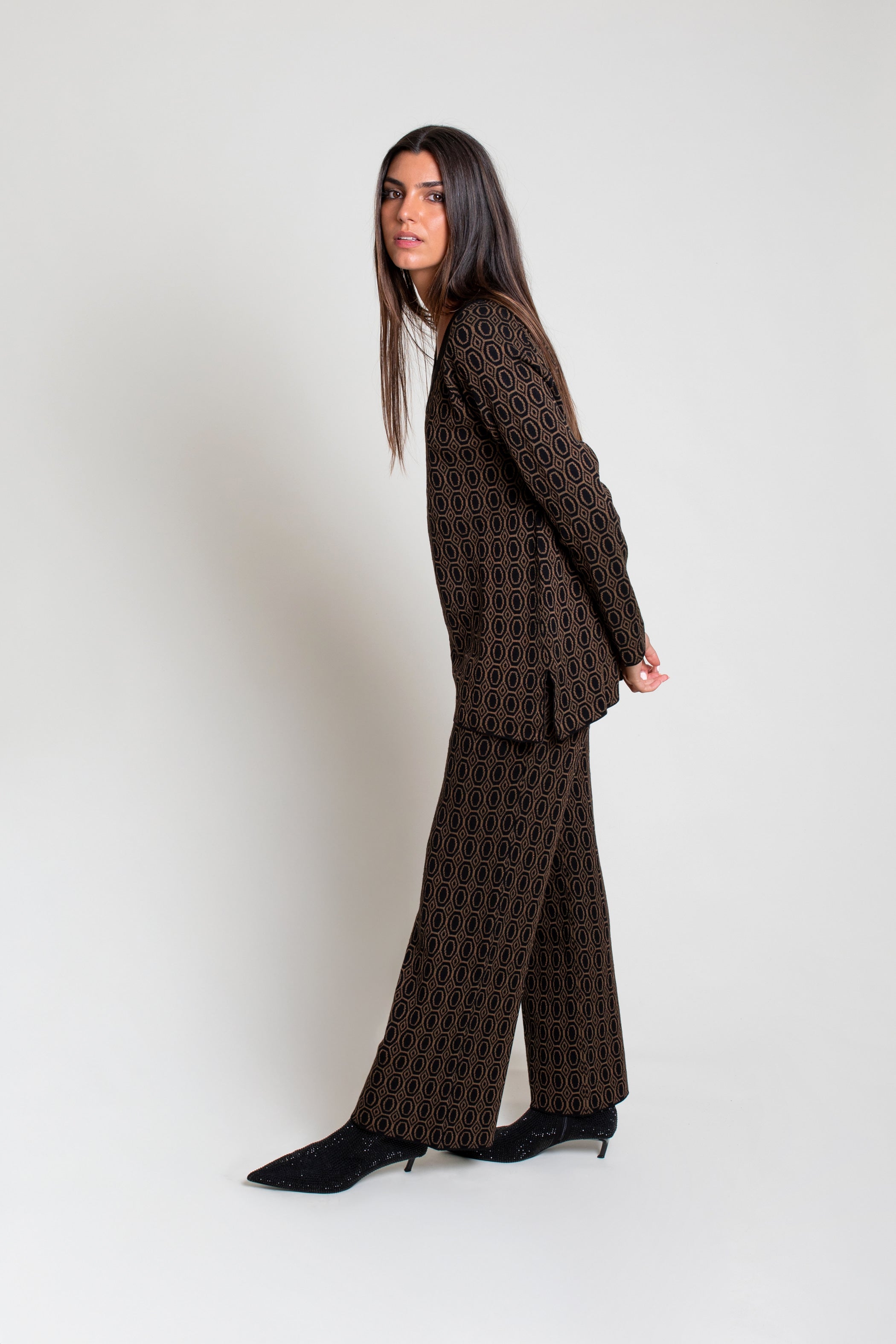 Pantalón de corte recto en jacquard de punto bicolor con cintura y tapeta a combinada. Cintura con goma